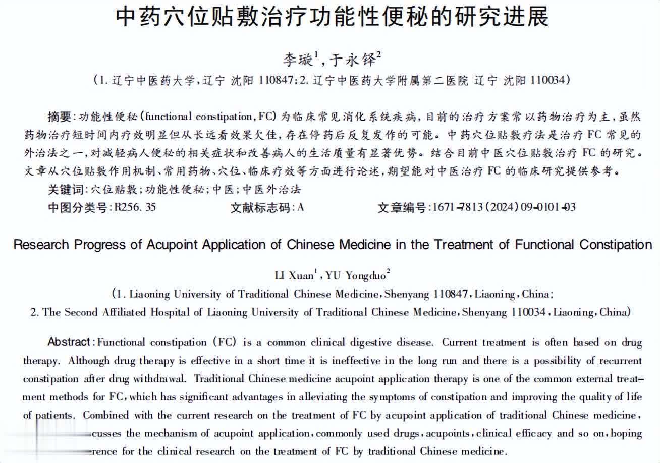 参考资料:[1]李璇,于永铎.中药穴位贴敷治疗功能性便秘的研究进展[J].实用中医内科杂志,2024